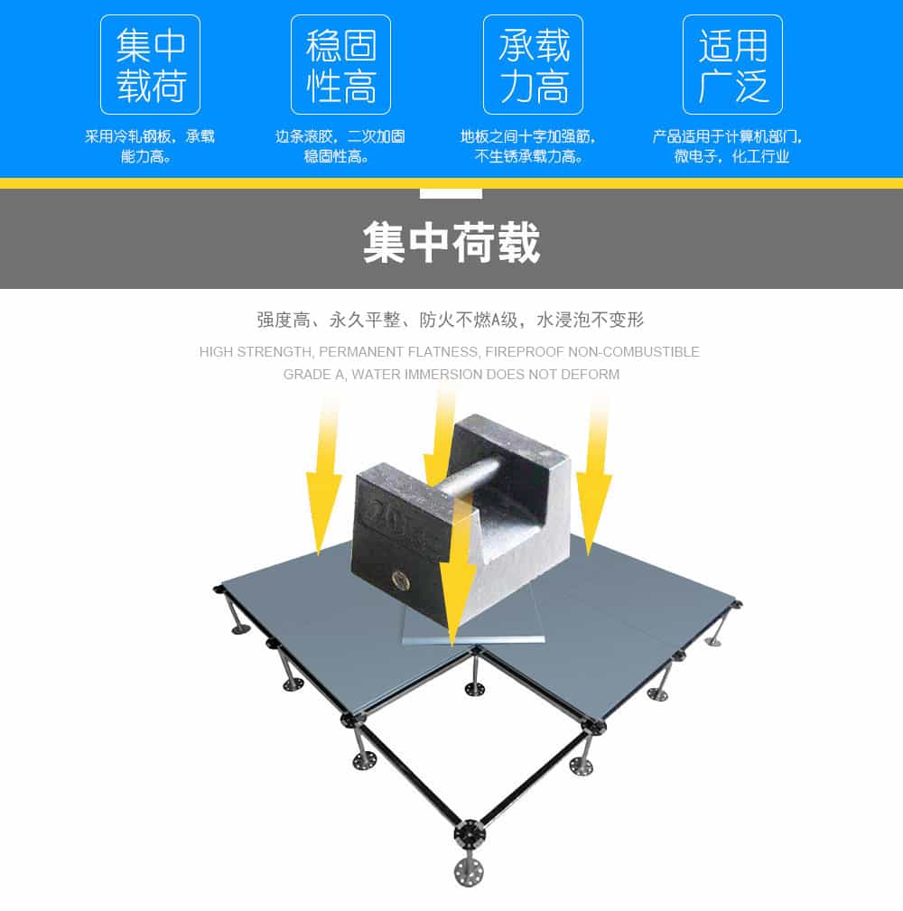 “遠(yuǎn)川”牌硫酸鈣網(wǎng)絡(luò)地板采用硫酸鈣為基材,板芯六面均用鍍鋅板包合而成,地板不易受潮,不易變形,耐燃燒時(shí)間更長,使用壽命長,安裝好的地板下面形成通路,方便下面地板走線,線路檢修。地板無需除油磷化噴塑,平整度好、邊不反翹,環(huán)保、強(qiáng)度大,密封性及穩(wěn)定性好。